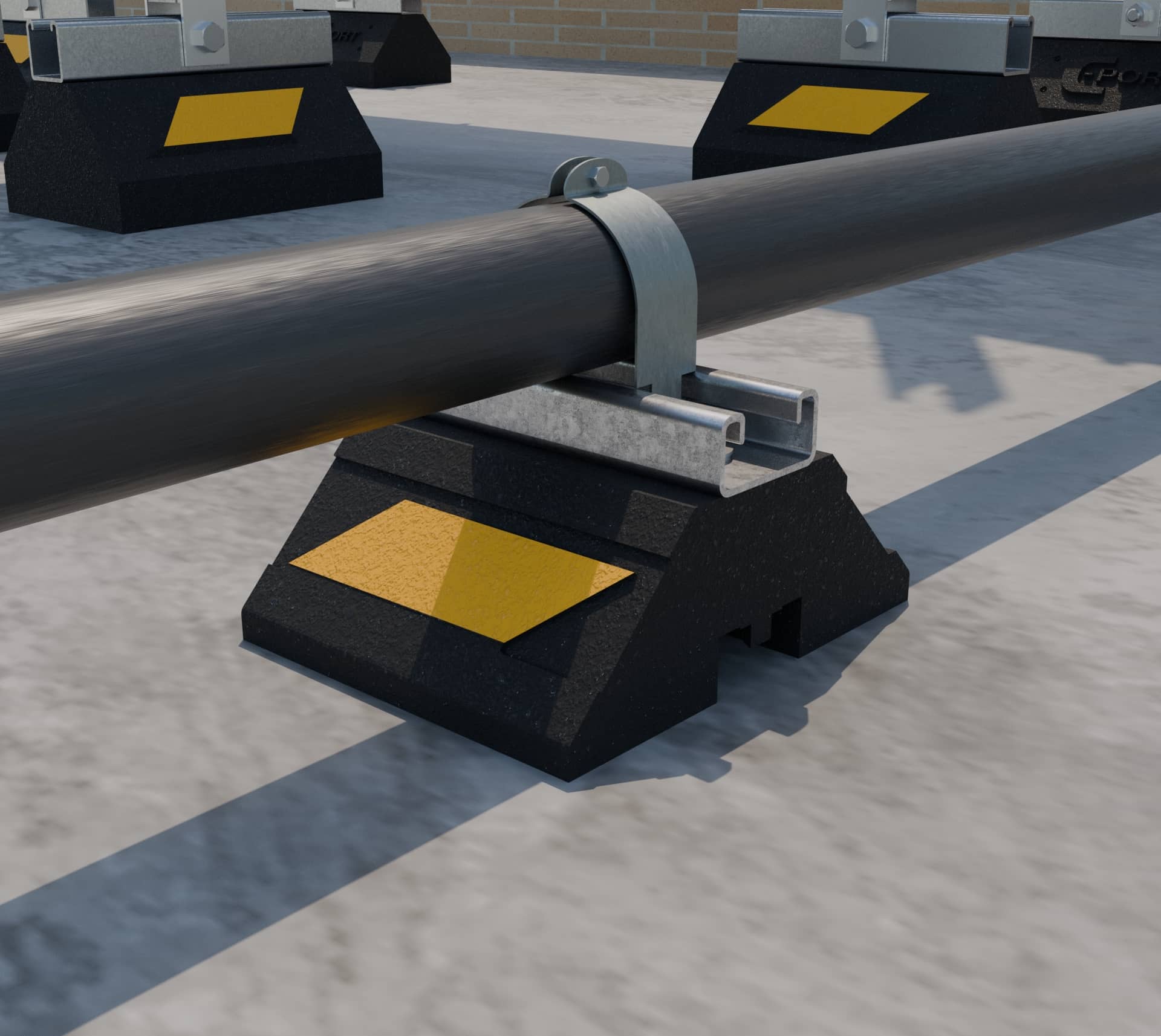 The CH5 Series is a non-penetrating rooftop support and C-Port’s smallest strut channel support, designed to support small conduit and piping across solar, telecom, and a wide range of rooftop applications. It is suitable for most types of roofing materials or other flat surfaces and accepts various straps and/or clamps (sold and supplied by others).